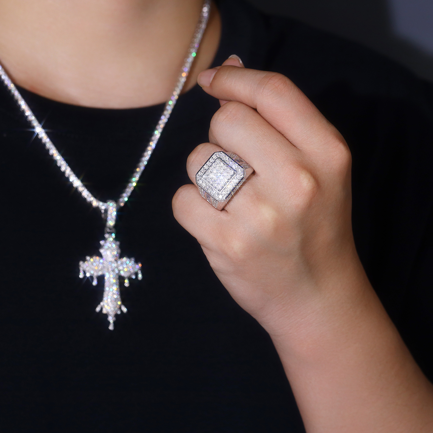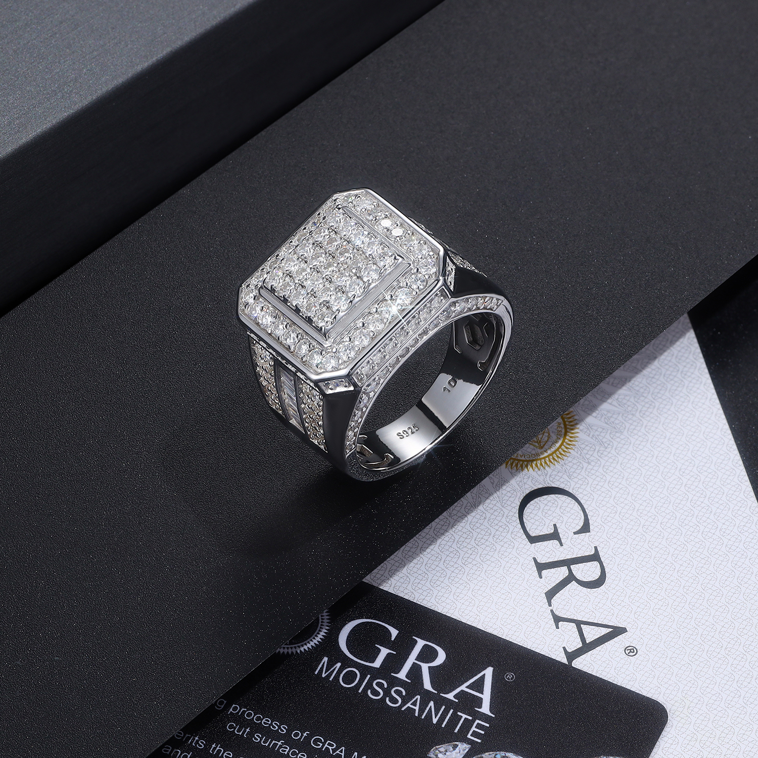 Men’s Letter H Set With Top-quality Moissanite Luxury And Fashionable Light Luxury Jewelry Silver Ring S925 Silver Plated Platinum