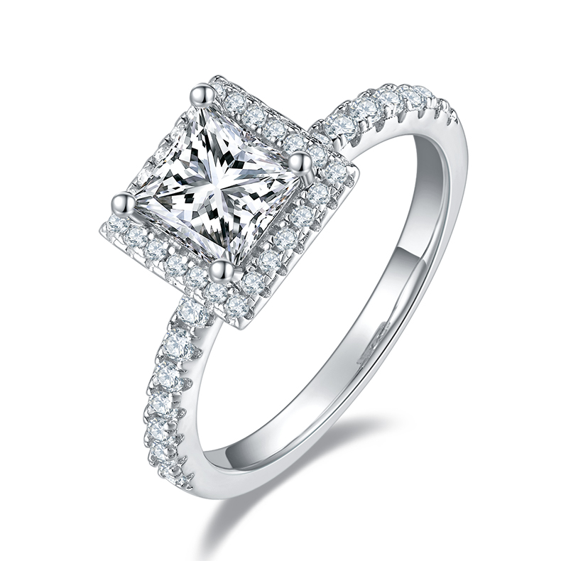 Square Moissanite Set With Top-quality Moissanite Luxury And Fashionable Light Luxury Jewelry Silver Ring S925 Silver Electroplated With Platinum