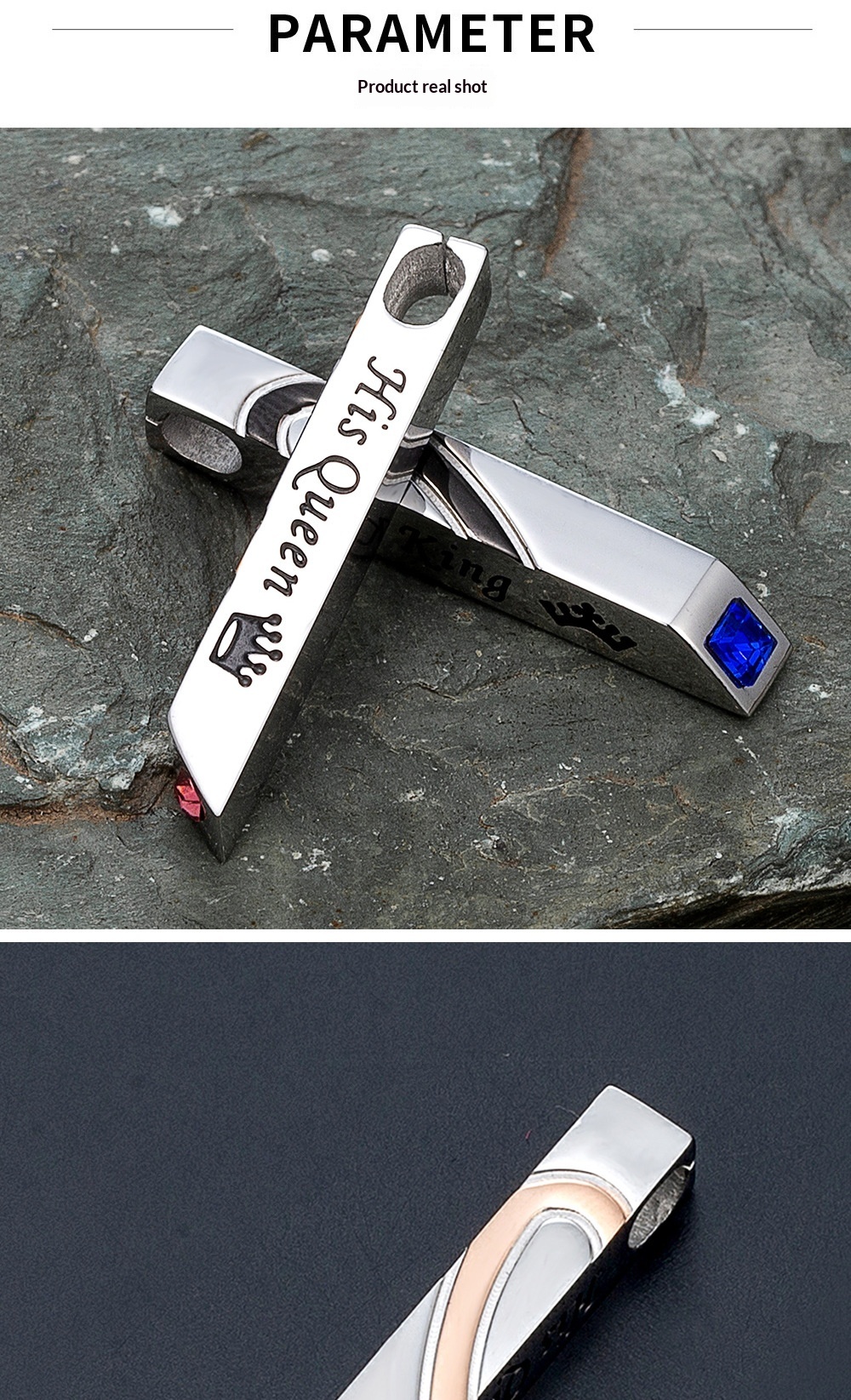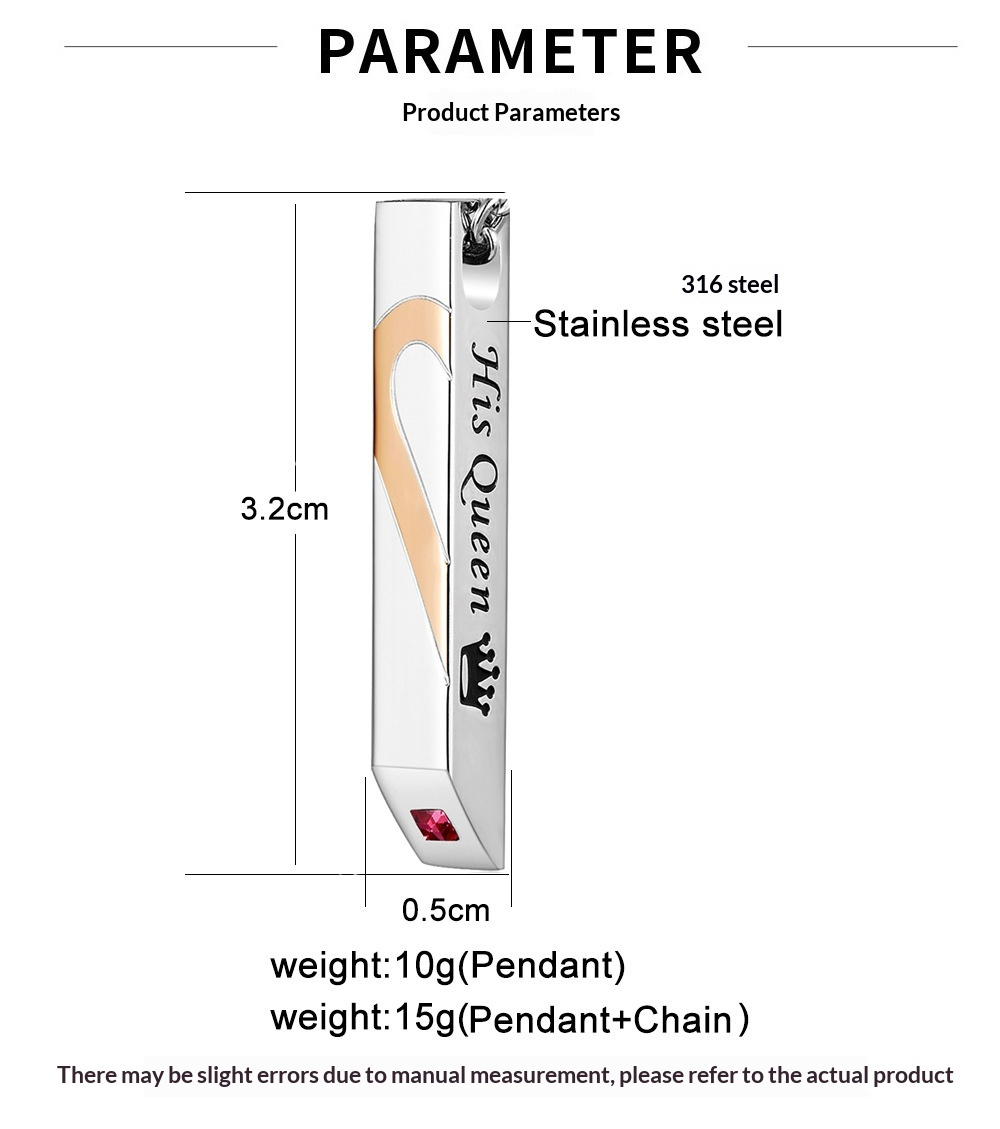 Titanium Steel Couples Heart-Shaped Necklace With Diamond-Inlaid Patchwork Design